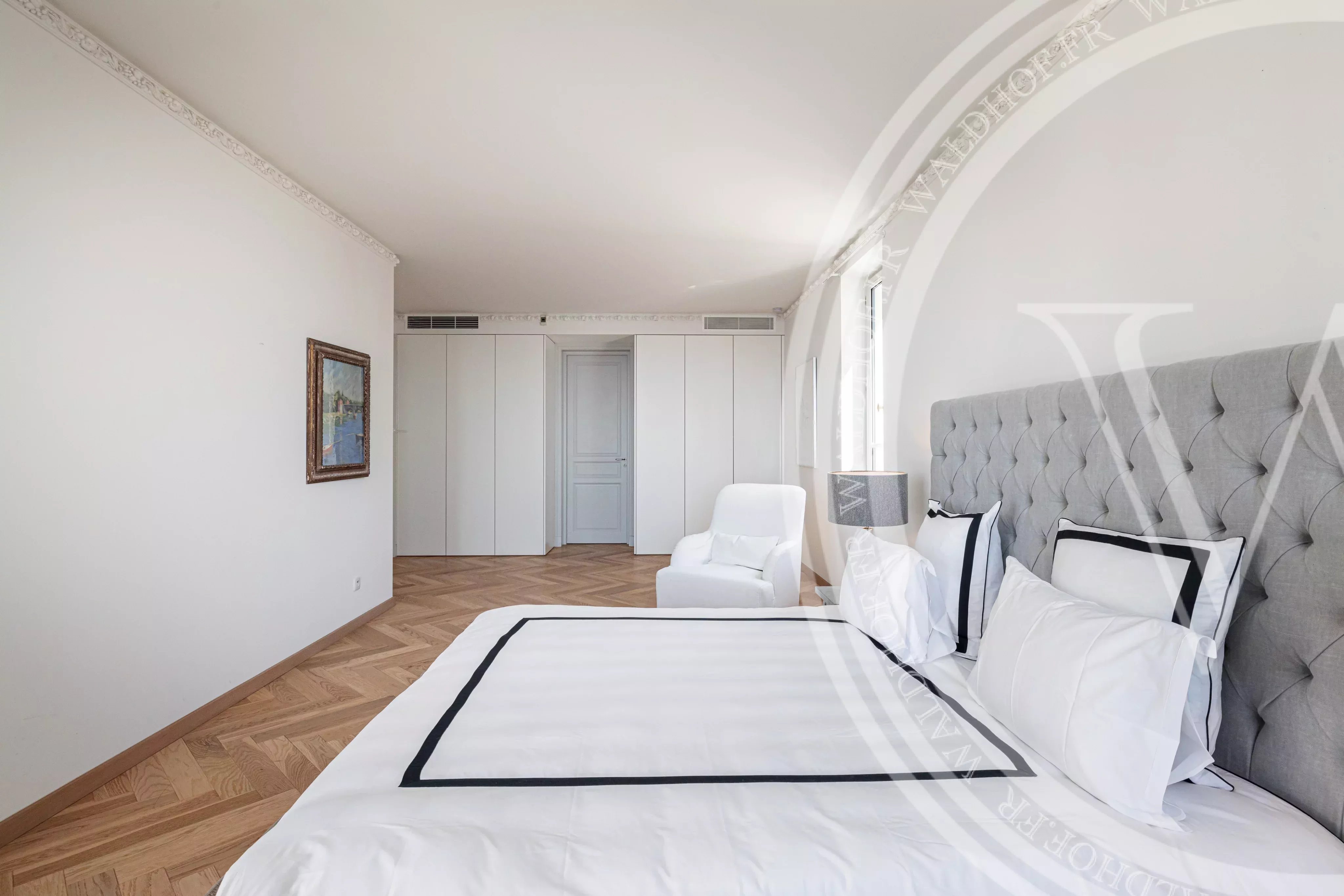 Chambre 1 (Master) : 1 lit double, dressing, salle de bain avec baignoire et douche.