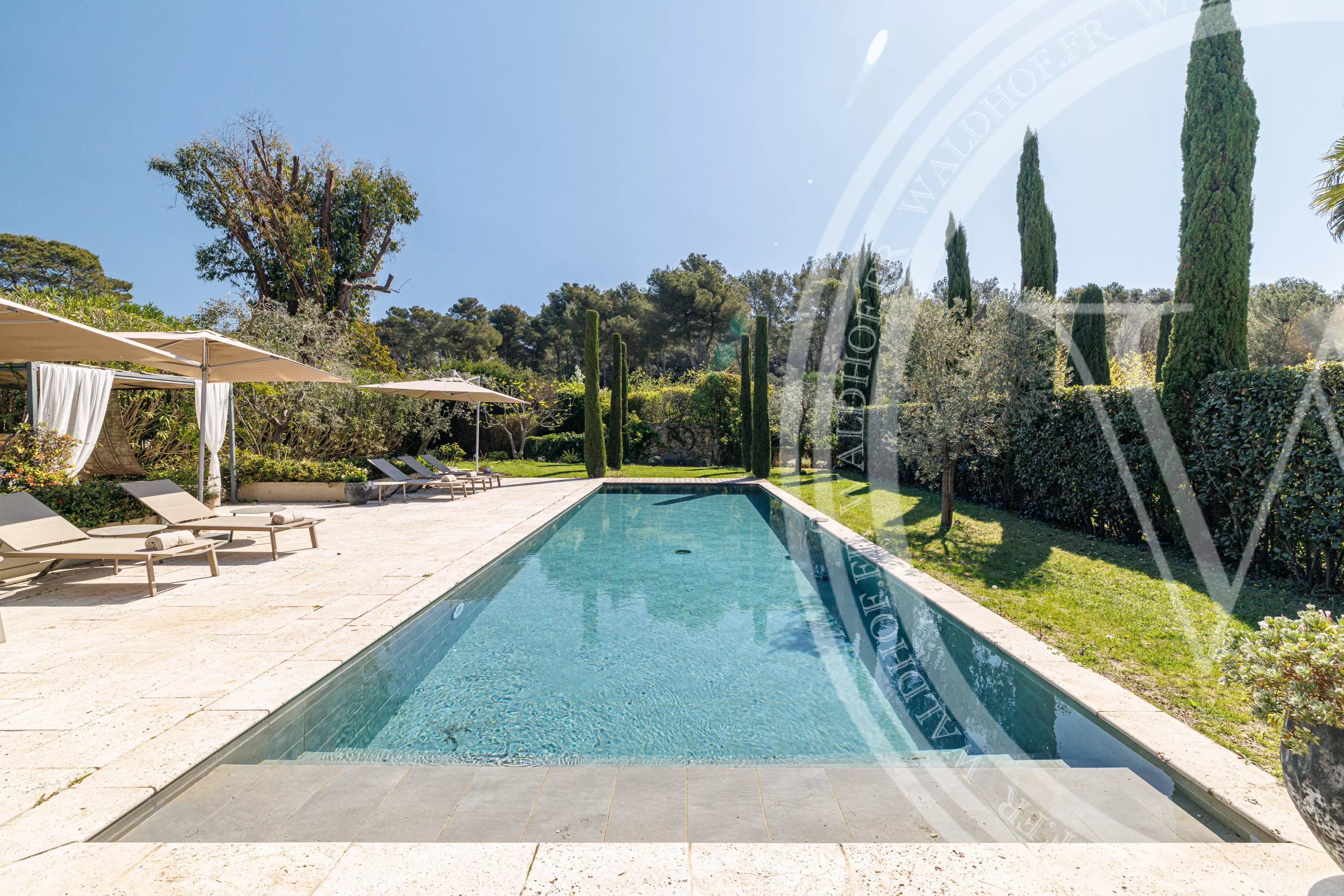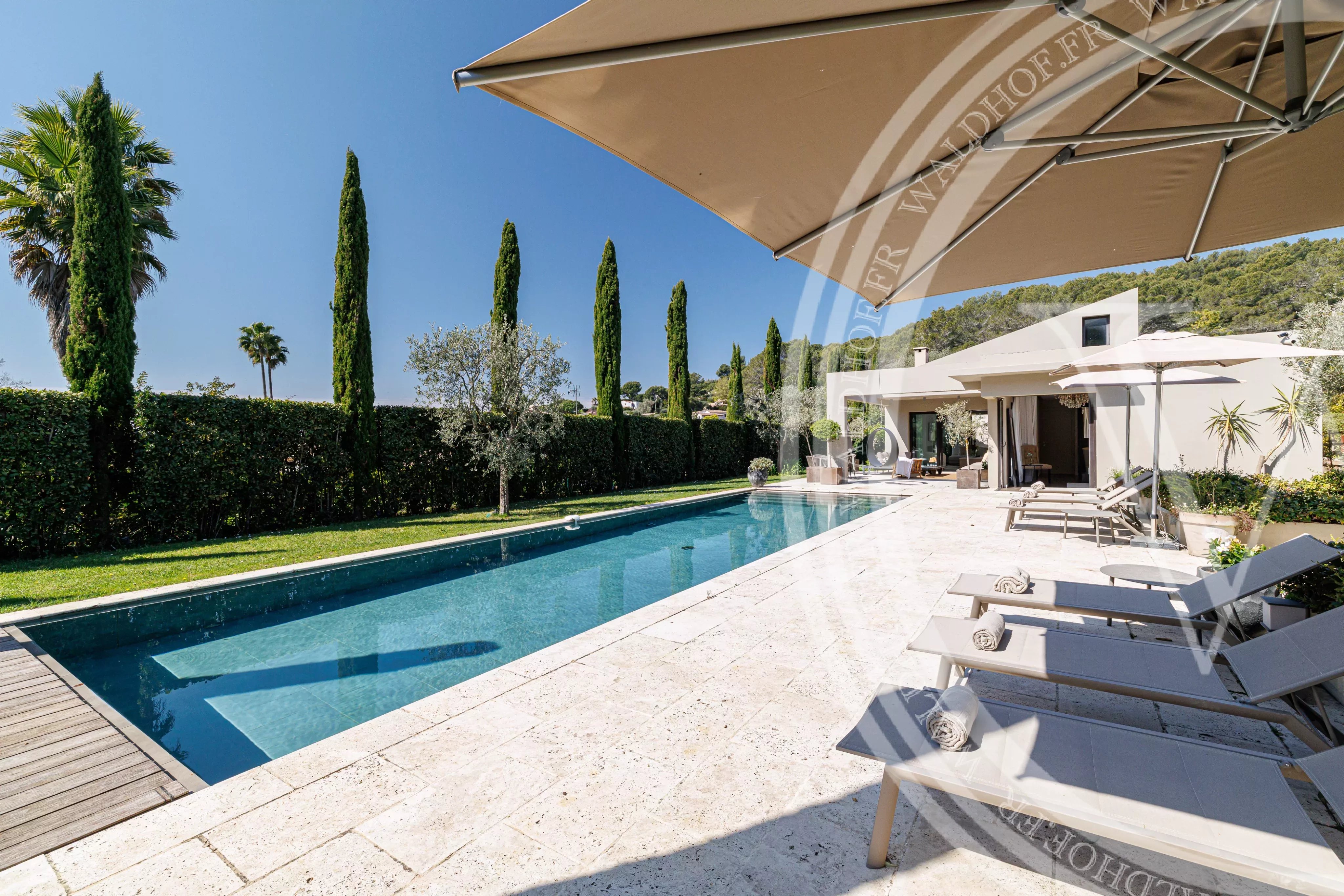 Villa contemporaine Mougins avec des prestations haut de gamme, quartier calme à environs de 15 minutes du centre de Cannes.